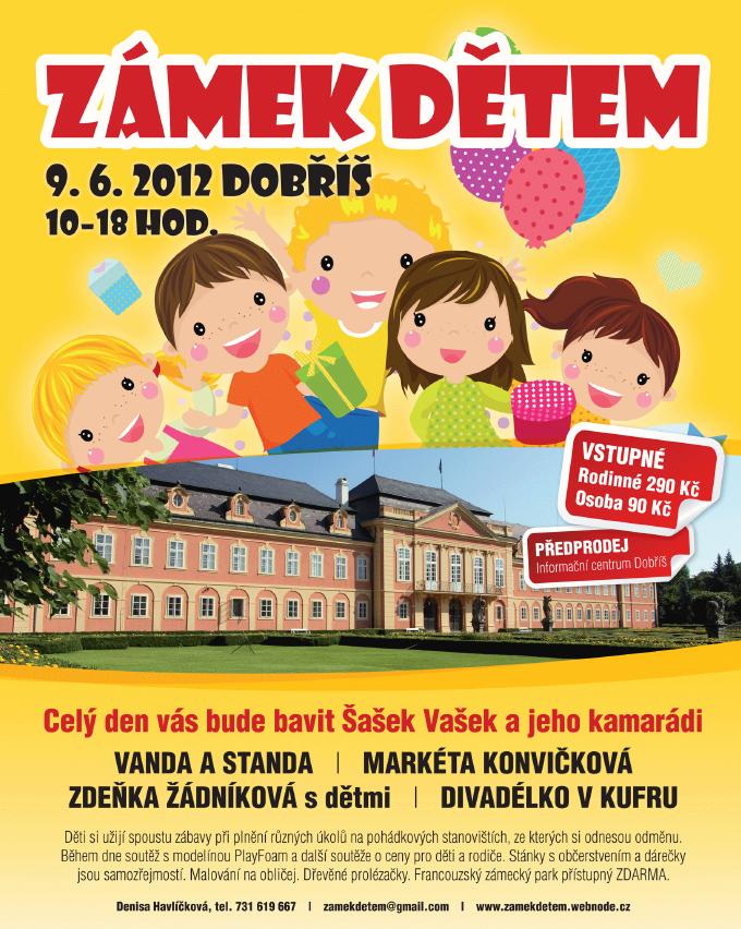 Srdečně Vás zveme na první ročník akce „Zámek dětem“ – pohádkový den pro děti na dobříšském zámku, která se koná 9.6.2012 od 10 do 18hod.