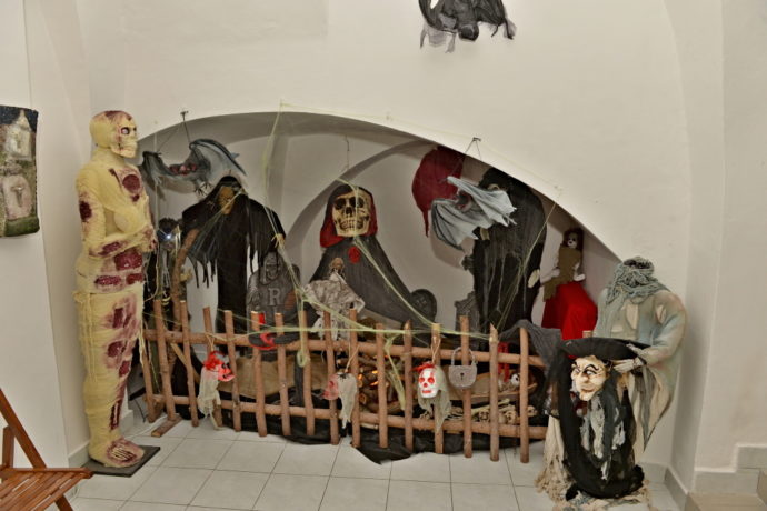 Strašidla jsou tajuplné bytosti nejrůznějších podob, které mají jedno společné – svým náhlým zjevením nebo podobou nahánějí lidem strach, představují totiž něco hrozivého a nevzhledného. Na jedné straně výstava ukazuje milou až laskavou tvář strašidel, na straně druhé ale také děs a hrůzu, která ke strašidlům neodmyslitelně patří. Součástí expozice jsou výjevy umístěné v kufrech a mnoho pavučin. Celá výstava je doplněna o zvukové, světelné a další interaktivní prvky, najdete zde i dětský strašidelný koutek. Exponáty zapůjčil principál strašidel Kočovného muzea Zdeněk Zajíček.
