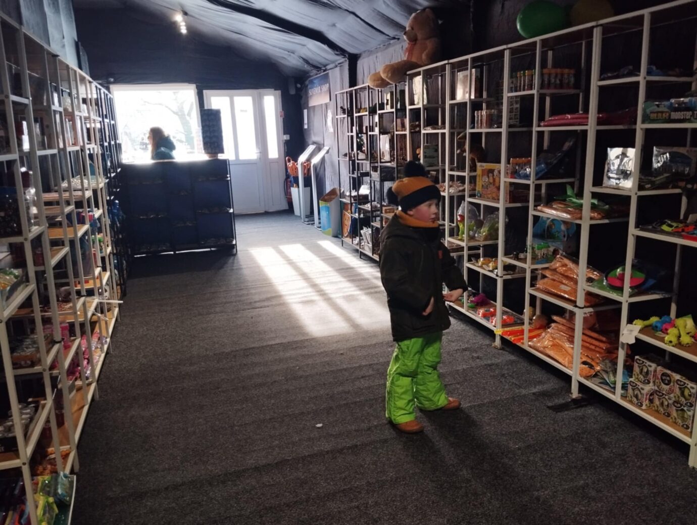 Po prohlídce a všemožných klouzačkách jsme zamířili ke stánku s občerstvením. Nabídka byla pro naši skupinku pestrá a absolutně dostačující – palačinky, výborná polévka, guláš, párek v rohlíku, batátové hranolky a klobása. My jsme si dali polévku, která nás krásně zahřála a děti se nadchly pro palačinky a hranolky. Všichni jsme si pochutnali a doplnili energii. Klasika pivo-limo, čaje a svařáčky nás osvěžili i zahřáli.