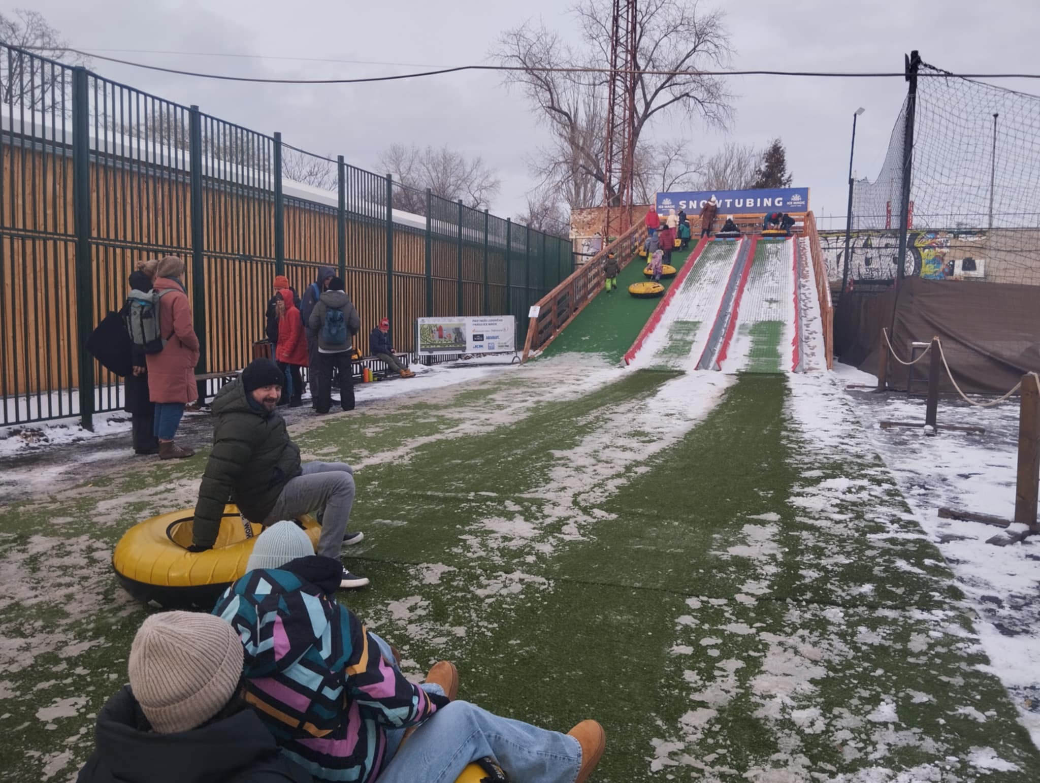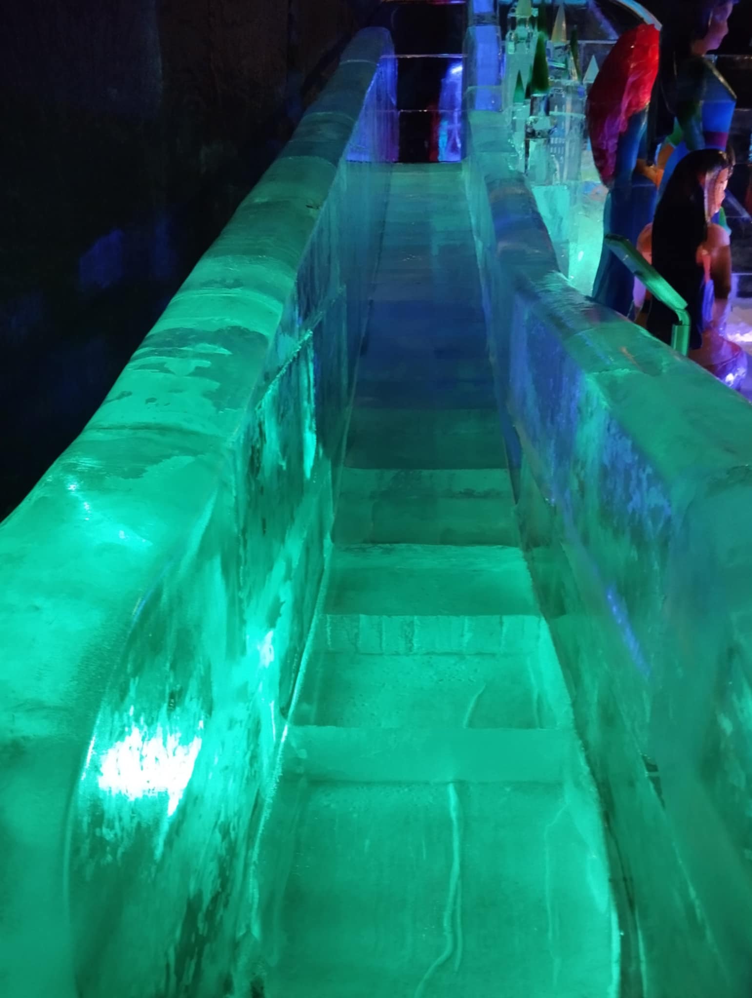 Největším lákadlem pro děti byly tři ledové klouzačky. Ty jsme samozřejmě museli vyzkoušet všichni – někteří s větším nadšením než jiní. Klouzačky byly skvělý nápad, jak zapojit děti do zážitku a byly navíc bezpečné. Díky zapůjčeným oblečkům to po skluzavce jelo jedna radost.
