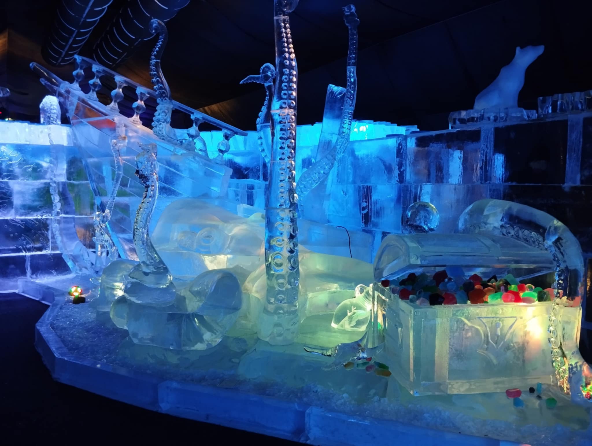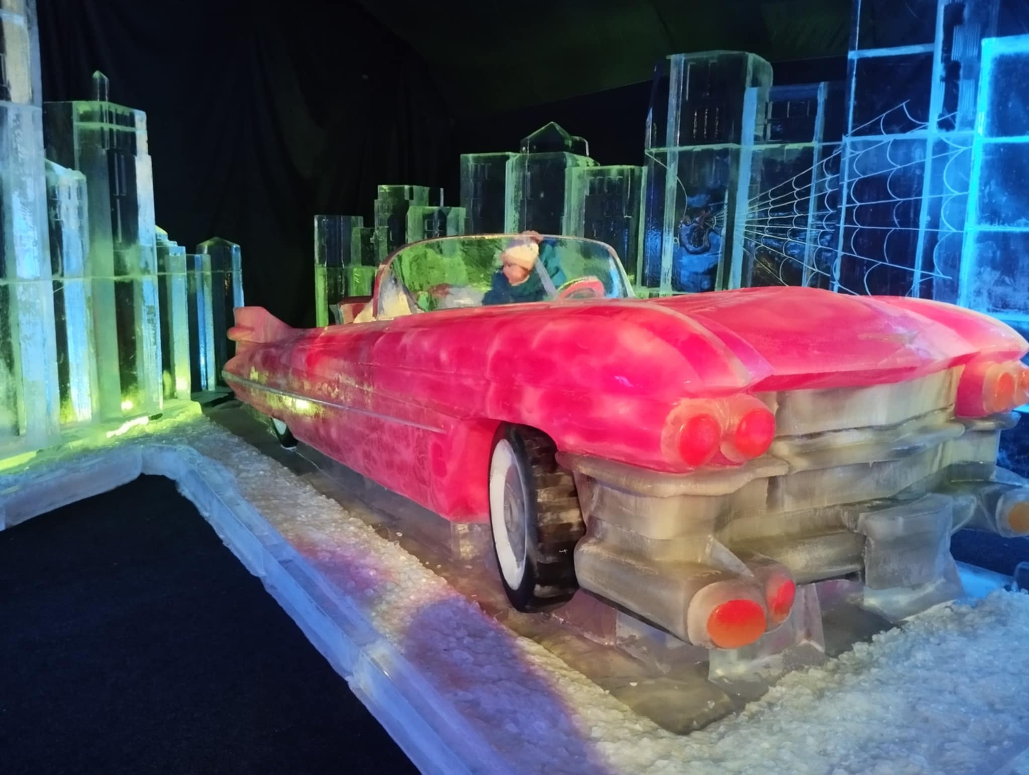 Uvnitř nás čekalo opravdové umělecké dílo – sochy z ledu na různá témata. Viděli jsme sochy zaměřené na Retro Film and Music a Podmořský svět Antarktída či dinosaury. Dále jsme si prohlédli sochy na téma inspirované princeznami od Disney a pohádkou Transformers. Děti byly nadšené, hlavně když poznaly některé oblíbené hrdiny. Chlapci hned naskočili do stylového Cadilaku, kde byla možnost posezení. Pro rodiče byla výstava ledových soch příležitost obdivovat detailní práci a preciznost umělců, kteří tuto krásu vytvořili.