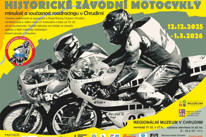 Zveme vás na jedinečnou výstavu věnovanou závodům na přírodních okruzích a jejich tradici v Chrudimi. Ve spolupráci s mladým, ale zkušeným Road Racing Clubem Chrudim představujeme svět rychlosti, odvahy a motorsportu, který se zapsal do historie regionu.