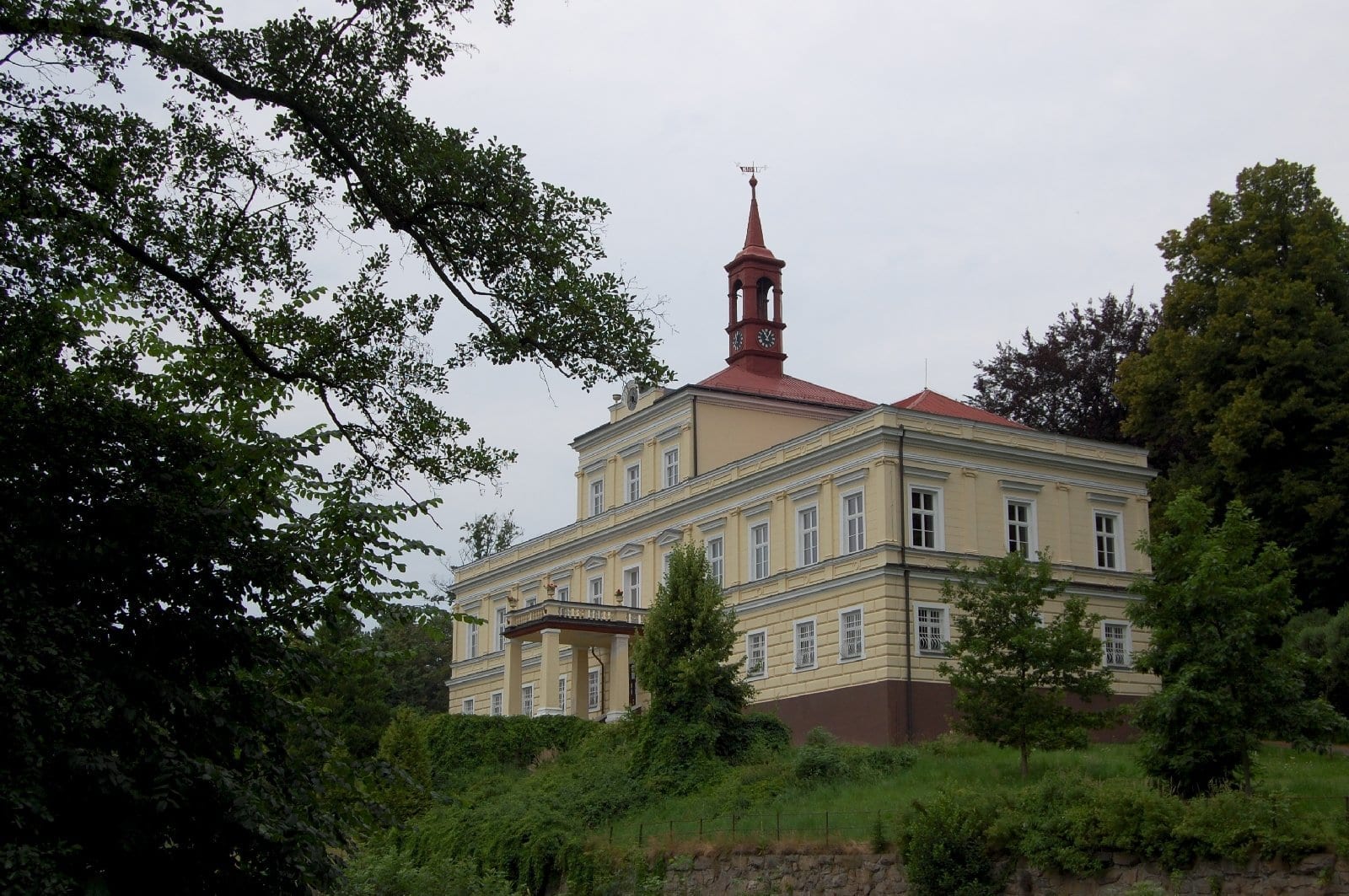 Až do roku 1572 byla ves Rozsochatec součástí panství hradu Ronovec – zmíněného roku připadla při dělení rodového majetku Jindřichu Haugvicovi z Biskupic. Jindřich ves roku 1584 prodal svému bratru Zikmundovi, který si zde postavil tvrz připomínanou roku 1600 jako majetek jeho manželky. Roku 1615 koupil Rozsochatec Abrahám Bechyně z Lažan. Ten se sice zúčastnil stavovského povstání, odsouzen však byl pouze k manství, které trvalo do roku 1651. Tvrz byla tehdy již ve špatném stavu a někdy během následujících třiceti let ji Bechyňové přestavěli na barokní zámek v první polovině 18. století rozšířený.