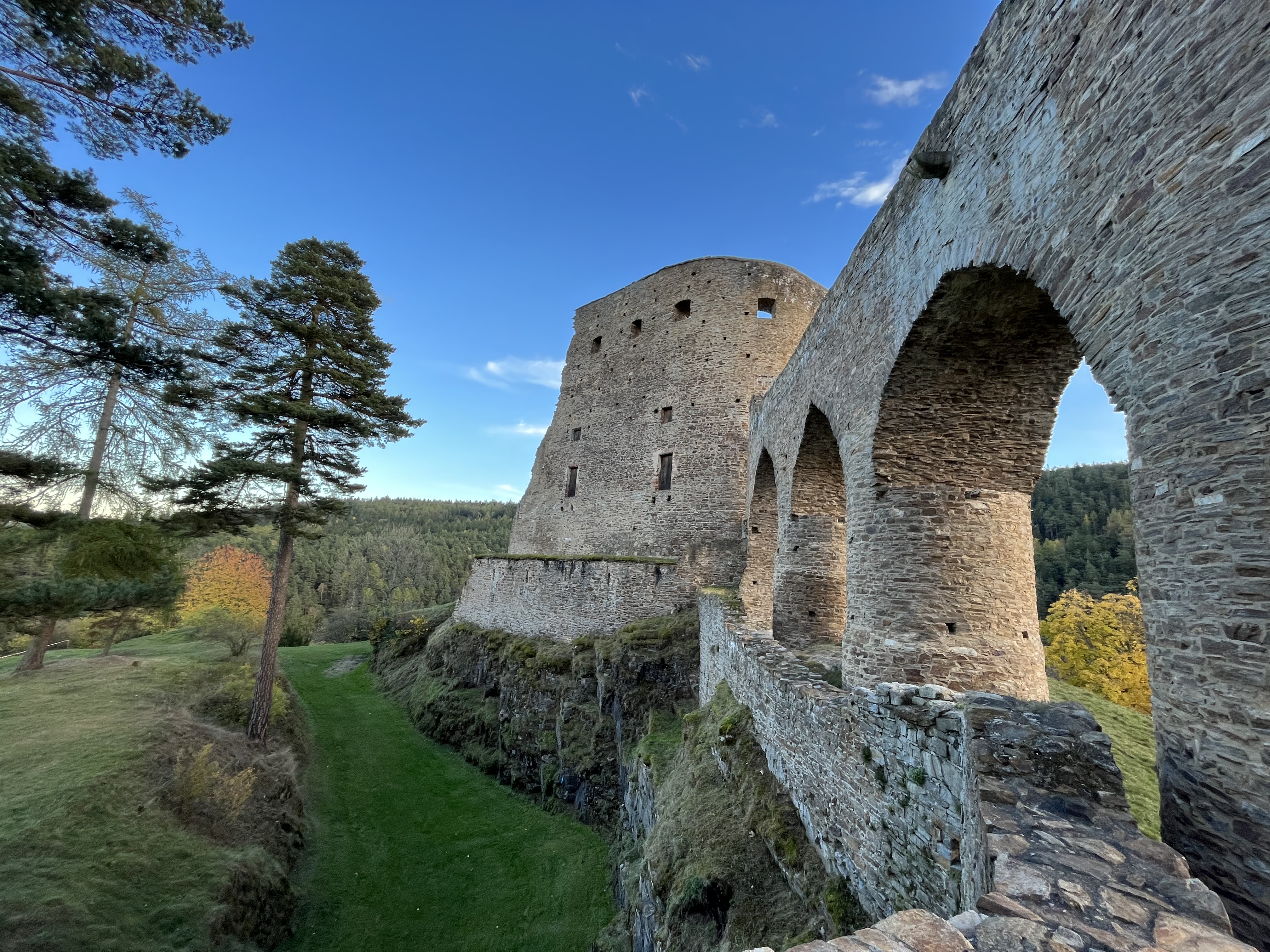 Dominantou obce je gotický hrad, který najdeme nad řekou Ostružná. Na hradu je jedinečné jeho spojení věže s palácem, to je totiž provedeno pomocí mostu. Obec byla v minulosti významná pro těžbu galenitu a zlata. Důkazem o této činnosti je štola, která se nachází v údolí řeky. Obec těsně sousedí s přírodní rezervací, která nese název Borek u Velhartic. Můžeme ji dělit na několik částí, těmi jsou Braníčkov, Drouhavec, Hory Matky Boží, Chotěšov, Jarkovice, Konín, Nemilkov, Radvanice, Stojanovice a Tvrdoslav. Mezi další významné památky obce patří kostel Narození Panny Marie a kostel svaté Maří Magdalény. Na území obce je také židovský hřbitov a bývalá synagoga, která je přestavěná na hasičskou zbrojnici. Místní kostel údajně posloužil jako inspirace k sepsání balady Svatební košile. Tu najdeme ve sbírce Kytice, z pera Karla Jaromíra Erbena.